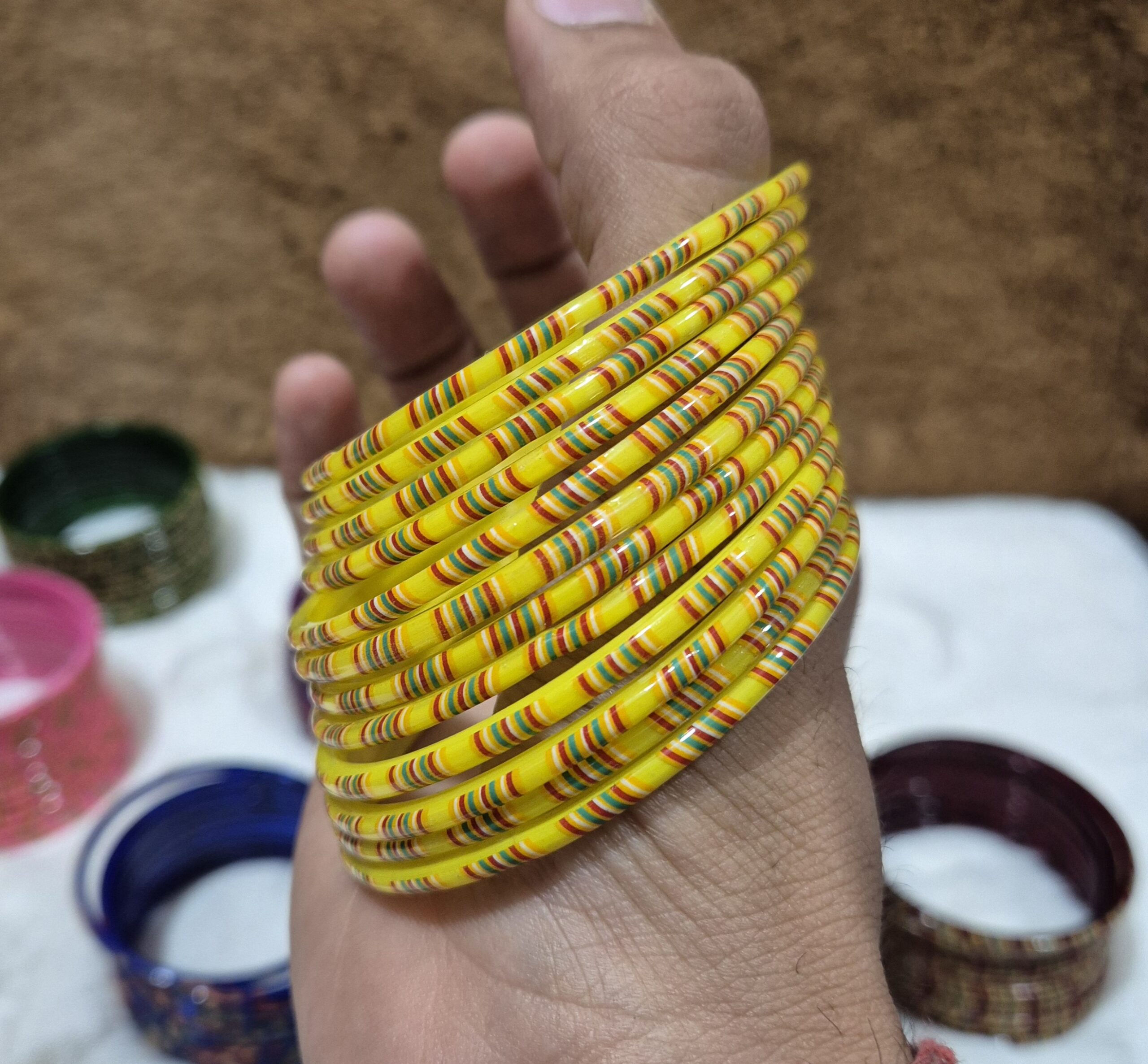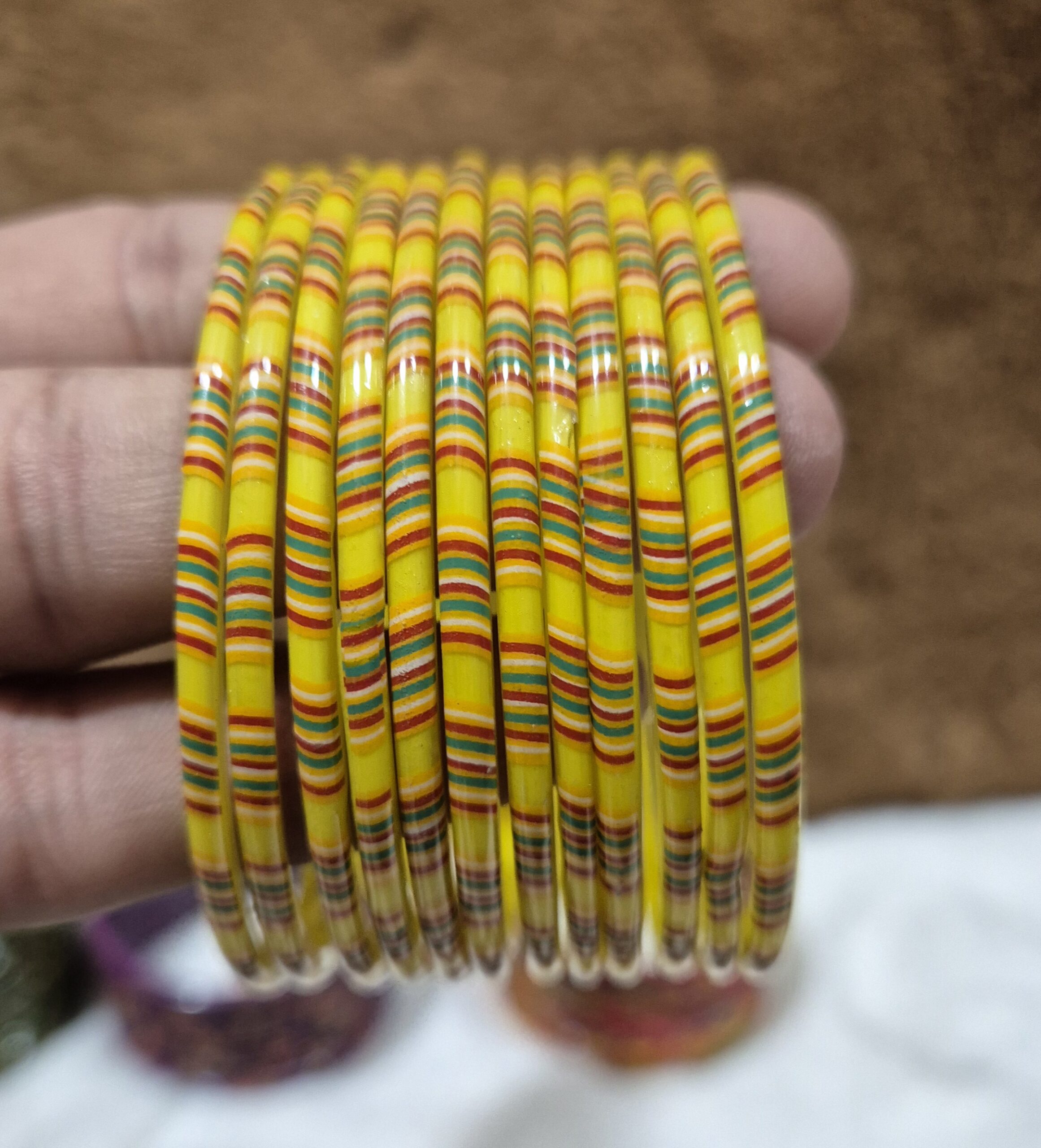 पिले कलर मे काँच की 12 चुडी A5